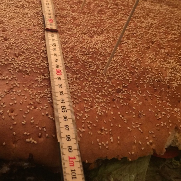 Il maxiburger non è certo per un singolo. Durante gli esperimenti, hanno invitato a provare a terminare il “burgerone” delle squadre di giovani affamati e 20 persone non sono riuscite a finirlo.