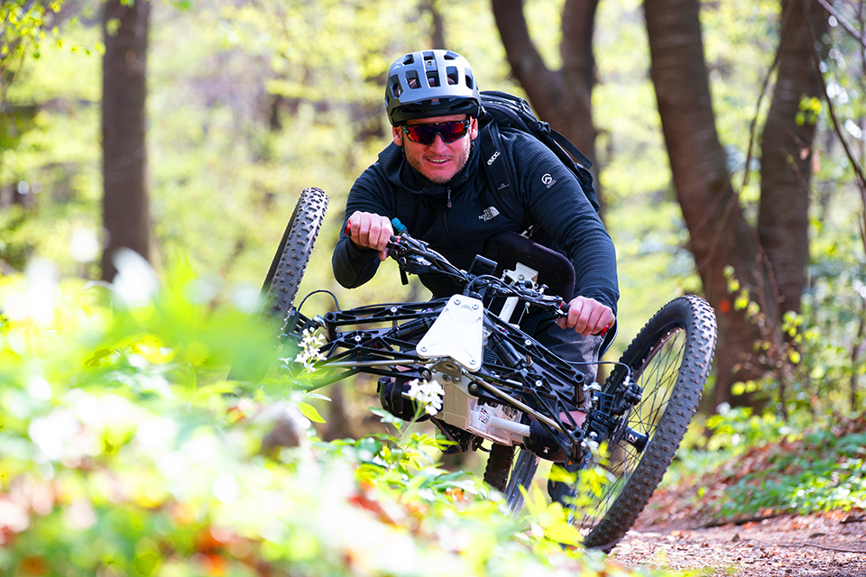 Murat Pelit in azione sul “suo” percorso con l’handbike [Foto: ©Mendrisiotto Turismo, Jaques Perler]