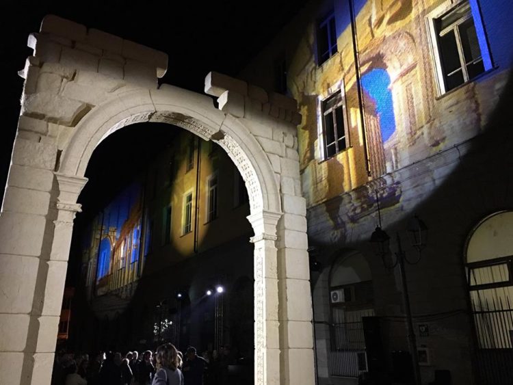 Lo spettacolo di luci e musiche in omaggio all’evento Passing Through, moving Forward è stato ideato dallo scenografo Sebastiano Romano: ha illuminato le facciate dei palazzi che circondano la piazza con immagini di deserti, palmeti e visioni del sito archeologico siriano. Lo show di luci sarà riproposto tutte le sere fino al 30 luglio per venti minuti a ripetizione, nei seguenti giorni e orari: dal lunedi al giovedì, dalle 21.30 alle 23.30; il venerdì, sabato e domenica dalle 21.30 alle 24.00. In cartellone, numerosi altri eventi collaterali come una mostra al museo archeologico, incontri con autori, scrittori e personaggi del mondo della cultura, dell’arte e dell’archeologia.
