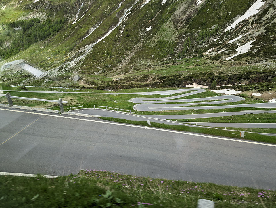 Il ripido tratto svizzero della strada dello Spluga con i suoi tornanti [Foto: ©SvizzerAmo]