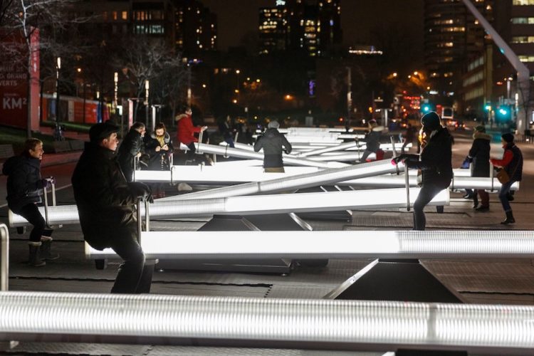 Quando sono in movimento, la loro luce varia d’intensità a seconda dell’inclinazione ed emettono dei suoni composti dall’artista canadese Mitchell Akiyama. Insomma, l’installazione prende vita ed è proprio il pubblico ad azionarla. Si potrà provare tutti i giorni fino all’8 gennaio, gratuitamente, dale ore 10 alle 23.