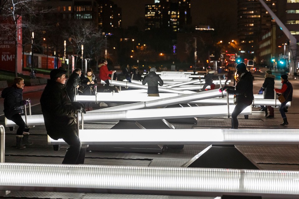 “Impulse” è stata premiata durante il Festival “Luminothérapie” del 2015 organizzato dal Partenariat Quartier des Spectacles di Montreal. Dalle foto si vede che è un’opera di grande impatto scenico che richiama il gioco dell’infanzia più famoso. Le altalene hanno dimensioni variabili tra i cinque e i sette metri e ci si può salire in più persone.