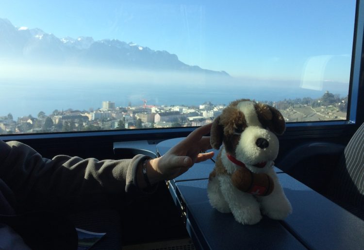 Svizzy in viaggio verso Montreux. Sullo sfondo il Lago Lemano