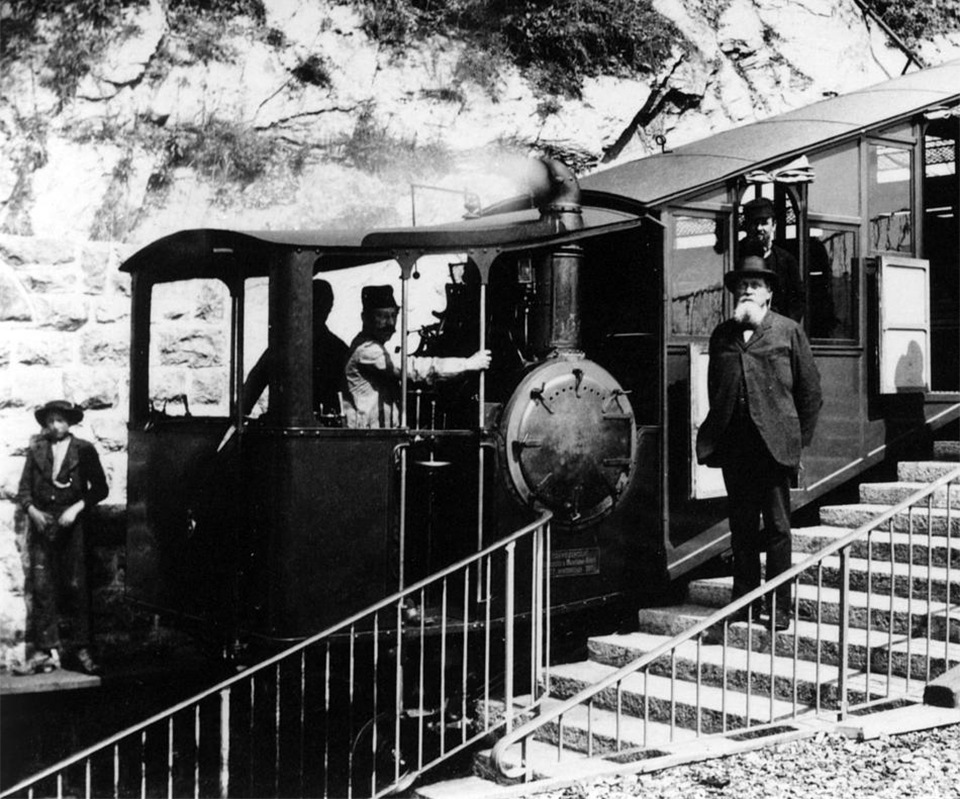 La Pilatus Bahn è stata concepita verso la fine dell’800 per sfruttare al meglio le possibilità turistiche dell’albergo che già esisteva in cima. Promotori furono un uomo di affari, Eduard Guyer-Freuler e l’ingegnere Eduard Locher il quale progettò anche il tracciato e il sistema di trazione.