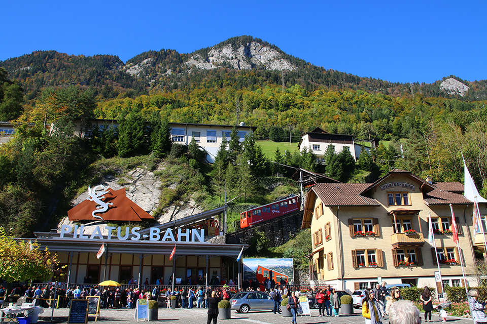 Lucerna vista dal Pilatus [Foto: Giancarlo Scolari – Ferrovie.it]È un’escursione molto piacevole e facilissima che inizia con una bella crociera sul Lago dei Quattro Cantoni con il battello della SGV che salpa dal pontile N°2 proprio davanti alla stazione. In una cinquantina di minuti si giunge ad Alpnachstadt e dall’imbarcadero alla stazione della Pilatusbahn sono poi solo pochi passi e le coincidenze sono immediate. In alternativa si arriva altrettanto facilmente con la ferrovia (17 minuti di viaggio con l’S5 in direzione Giswil). In questo caso ci sono anche più frequenze.