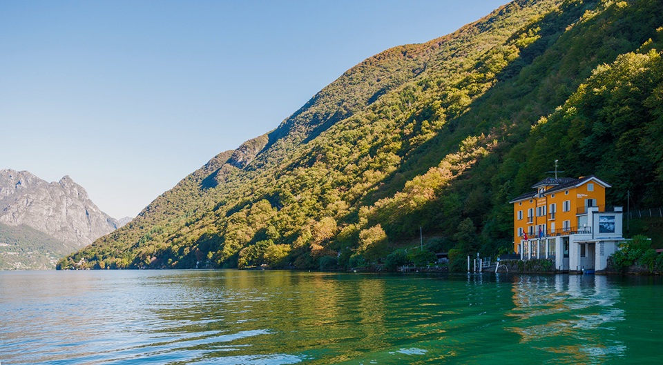 Il museo delle Dogane visto dal lago. Pochi metri più avanti corre il confine con l’Italia [Foto: MySwitzerland.com]
