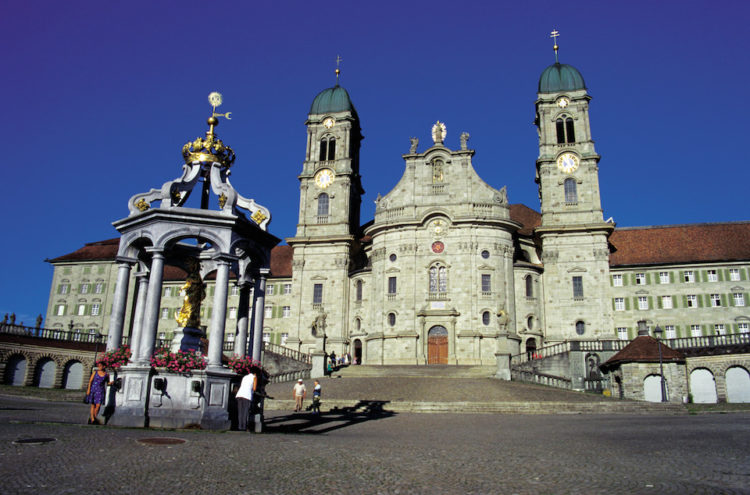 Le origini di Einsiedeln risalgono al 934 su iniziativa dell’abate Eberhard che costruì il primo nucleo dell’abbazia sul luogo dove il santo eremita Meinrad eresse una cappella. Il grande complesso di edifici romano-gotici dell’Abbazia fu trasformato nel XVIII Secolo in un’elegante struttura in stile barocco e rococò con quattro cortili interni.